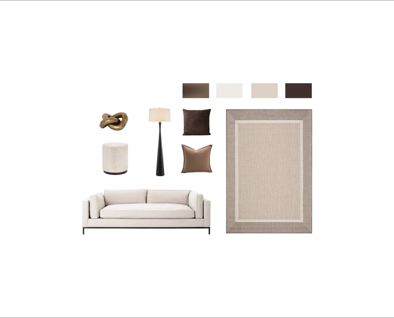 تشمل هذه الخدمة ستايل التصميم، مجموعة الألوان، الخامات، قطع الأثاث والإضاءة.