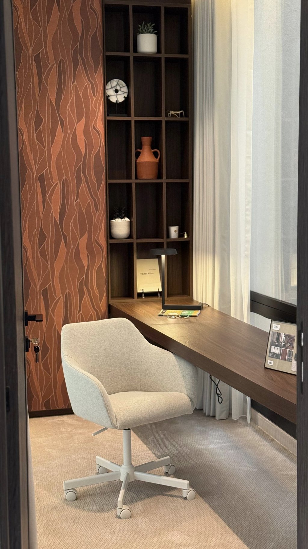 في هذا المشروع، قدمنا رؤية تصميمية تجمع بين الطابع الكونتمبراري العصري والبساطة الأنيقة، مع توظيف مدروس للألوان الجريئة والحيادية لخلق توازن بصري يعكس هوية المساحة.