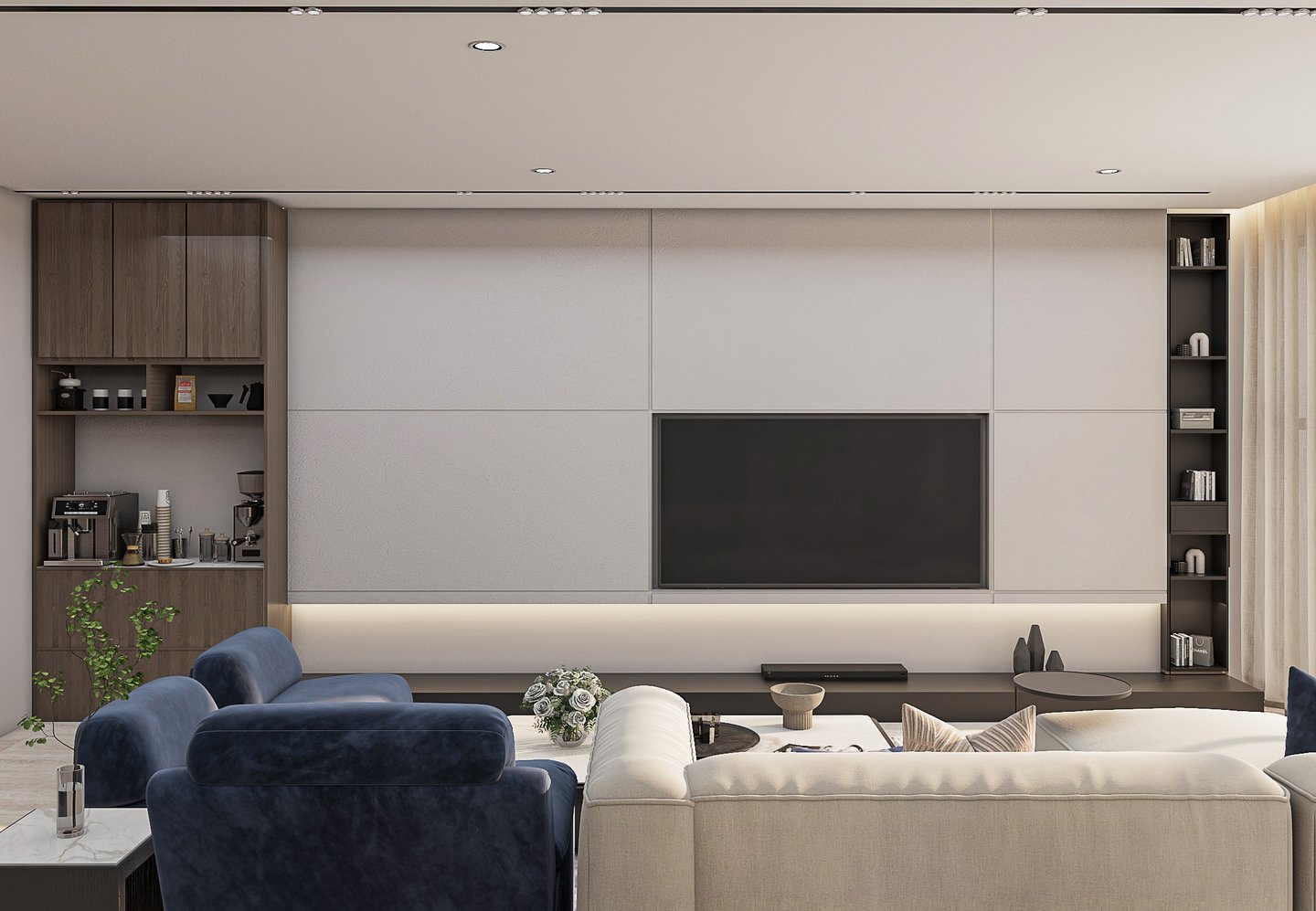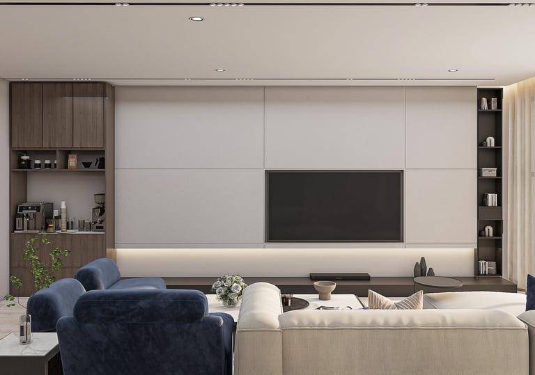 تصميم لشقة بأسلوب بسيط وأنيق، اعتمدنا فيه لوحة ألوان حيادية تُبرز اتساع المساحة وتمنح المكان شعورًا بالهدوء والشراحه. جاء التكوين متناغمًا في تفاصيله ليعكس توازن الجمال والوظيفية في كل زاوية.